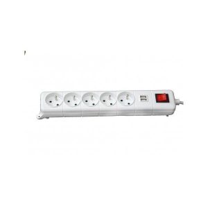 BLOC MULTIPRISE 5 PRISES 2P+T AVEC INTERRUPTEUR ET 2 CHARGEURS USB 1,40M SIMEF