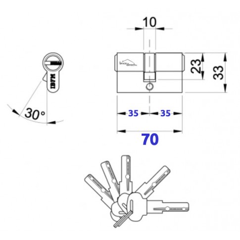 Longueur cylindre: 70mm (35/35mm)