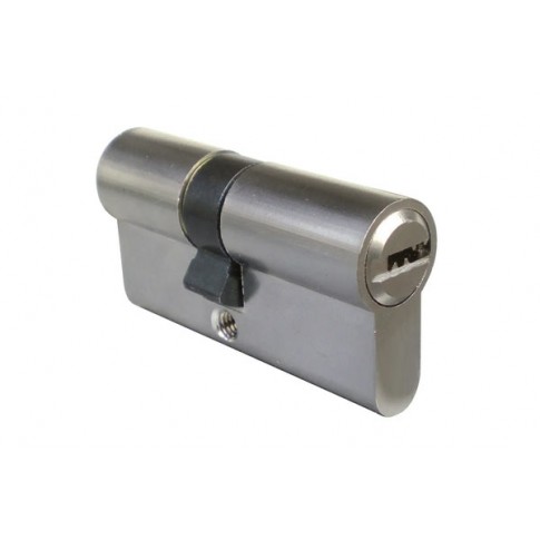 Cylindre de porte à 5 goupilles et à deux entrées. Clés spéciales. Finition : nickelé Livré avec 5 clés
