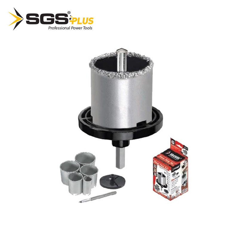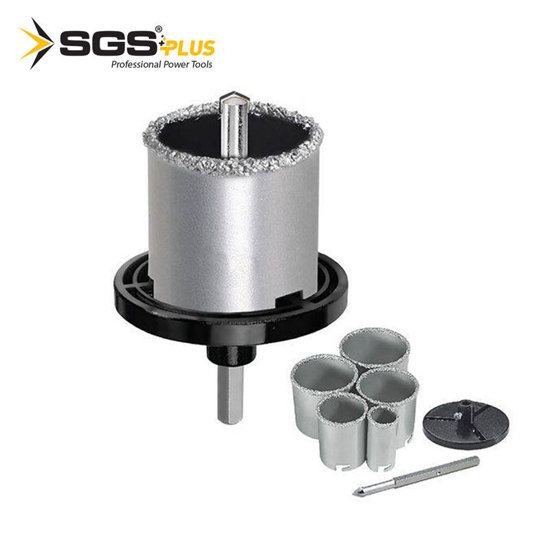 • Ensemble de 5 scies trépan diamantées avec foret à centrer.