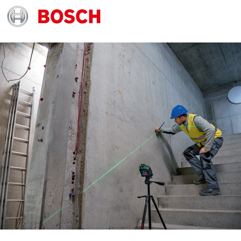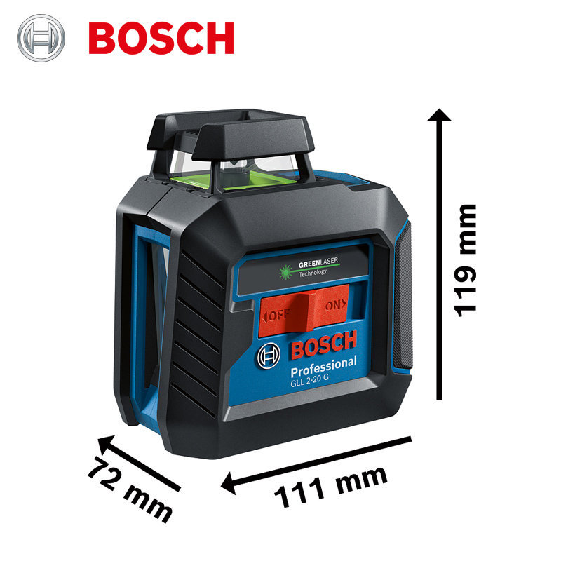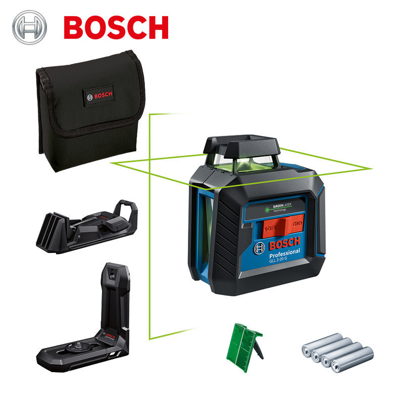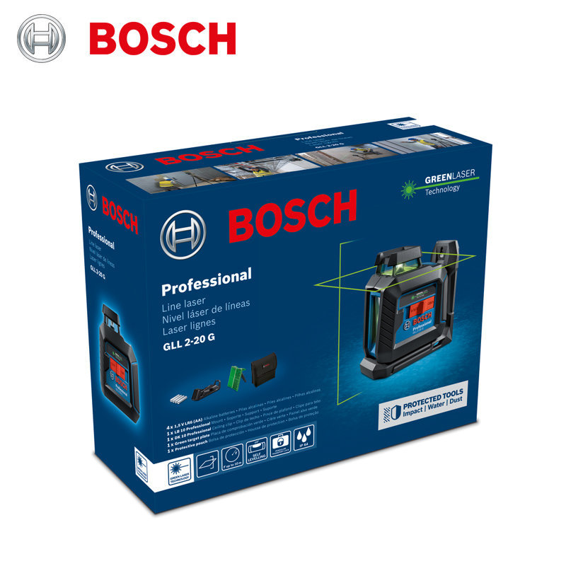 Le GLL 2-20 G Professional est un laser lignes robuste facile à utiliser qui projette une ligne verticale et une ligne horizontale sur 360°. Ses lignes vertes sont très bien visibles. Conçu pour les environnements rudes des chantiers, le laser lignes est protégé contre les poussières et les projections d’eau (IP 64) et doté d’un boîtier caoutchouté avec fenêtre en verre en retrait. Très intuitif, il dispose d’un interrupteur Marche/Arrêt et d’un bouton unique pour la sélection de mode (mode ligne horizontale, mode ligne verticale, mode croix).