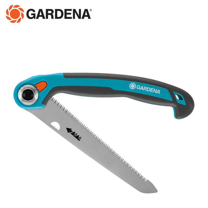 La scie pliante de jardinier 200 P appartient à la nouvelle génération de scies GARDENA. Cette scie a une longueur totale de 215 mm, ce qui en fait une scie polyvalente facile à utiliser pour couper des branches plus épaisses. Il est idéal pour tous les petits travaux de sciage dans le jardin, mais aussi pour les activités de plein air. Il est léger et efficace à la fois. La lame de scie chromée dur est dotée d’une denture de précision trempée par impulsion avec triple affûtage, ce qui garantit des résultats rapides avec peu de force et une coupe superbe et précise. L’encoche en particulier est considérablement facilitée. Rust n’a aucune chance d’attaquer. Vous pouvez emporter cette scie pliante pratique avec vous dans le jardin, par exemple en la pliant en toute sécurité et en la verrouillant solidement pour mettre la poche de votre pantalon. Chaque fois que vous avez besoin de votre scie, ouvrez-la simplement à nouveau à l’aide du trou pour le pouce. Le bouton de verrouillage maintient la scie en toute sécurité dans trois réglages différents. Et si vous n’avez pas besoin de la scie, il vous suffit de la replier. La lame de scie disparaîtra en toute sécurité dans la poignée aux formes magnifiques. Lors du sciage, une butée au bout du manche vous évite de glisser. Cela s’est avéré particulièrement utile lors des mouvements de traction et vous aide à progresser en douceur. Grâce à la forme ergonomique du manche légèrement incliné et aux parties souples du manche, cette scie tient confortablement et en toute sécurité dans votre main. Vous pouvez scier à une ou deux mains selon vos besoins. La scie peut être rangée sans prendre beaucoup de place et dans un endroit pratique grâce à l’œillet.