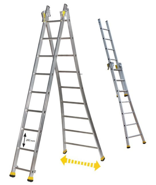 L’ÉCHELLE T2 EST UNE ÉCHELLE TRANSFORMABLE À BASE ÉVASÉE 2 PLANS .