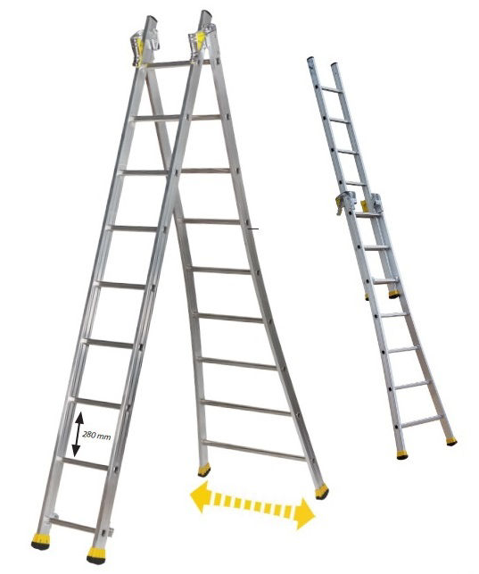 L’ÉCHELLE T2 EST UNE ÉCHELLE TRANSFORMABLE À BASE ÉVASÉE 2 PLANS DE LA GAMME MASTER.