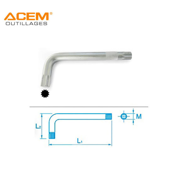 Acier chrome vanadium,présentation: Chromée satinée,Dureté: 54/58 HRC,M:14, L1:125, L2:45 mm
