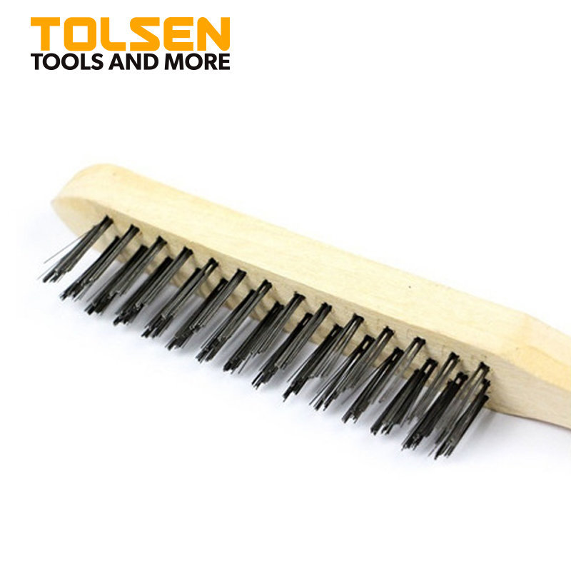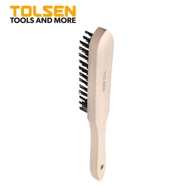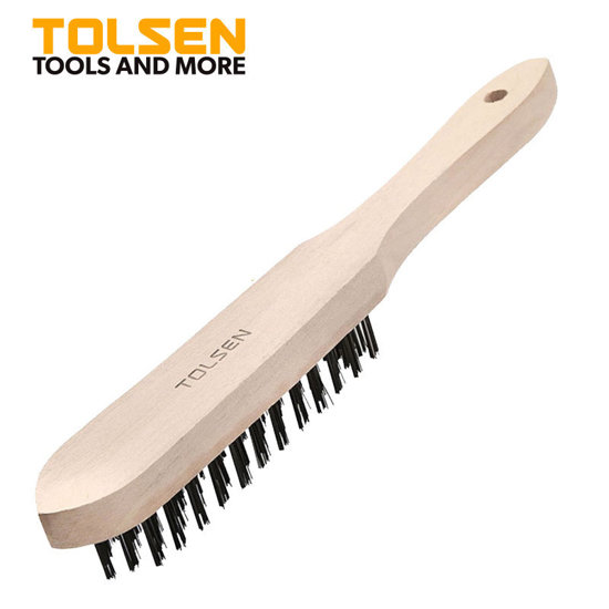 Brosse métallique TOLSEN – Fil droit et noir – Manche en bois – Emballage : étiquette volante